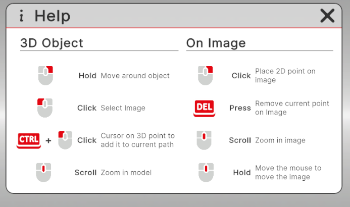 - Hold control and press left click to add a current 3D point to a path.