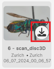 You can click on an image to view useful data about the specimen displayed in the inspector to the right. To download a specimen, click the “Load Model” button in the inspector or the icon next to the image. After waiting a few seconds, the model will load, and a sphere of images will surround it.