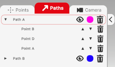 Similarly to points, you can perform the same actions for paths using the same icons. You can rename a path by double-clicking on its name. Next to the path’s name, there are icons for showing or hiding the path, changing its color, and removing it. At the bottom, you have options to show or hide all paths and to remove all paths.